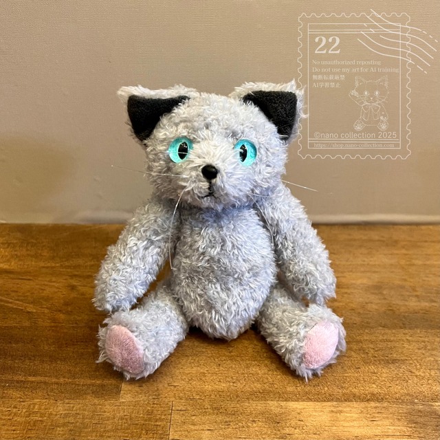 ロシアンブルーをイメージして制作した猫のぬいぐるみ「ぬいねこ」です♪ 愛猫にインスピレーションを受けて誕生した、テディベア型のぬいぐるみ「ぬいねこ」。 あなたのおうちの猫さんに似た子を見つけていただけるよう、ひとつずつ心を込めてお作りしています。 「うちの子にそっくり!」 「実家で飼っていた子を思い出しました」 「友達の猫と同じ柄だからプレゼントに選びました」 ──そんなお声をたくさん頂いています。 自分へのごほうびにも、大切な方への贈りものにもおすすめです。 ⭐︎ぬいねこのこだわりポイント ・ふんわり+ずっしり抱き心地 綿に加え、ペレットを胴と足に入れてバランスよく仕上げています。 ・ビー玉のような透明な瞳 美しいガラスアイと本革の小さなお鼻。素材にもこだわり、すべて丁寧に仕上げています。 ・やさしい表情の一点もの ひとつひとつ手作業で制作しており、お顔立ちや雰囲気に個性があります。 掲載写真の子をそのままお届けいたします。 ・動く手足&しっぽは針金入りでポーズ可 手足・頭は可動式、しっぽには針金入り。おすわりポーズが得意です。 ・ぬい撮りにぴったりサイズ 小ぶりでお出かけにも連れて行きやすく、旅のおともや猫ちゃんとの記念撮影にも。 ⭐︎お知らせ ぬいねこさん専用のクリアポーチ(オプション)が選べるようになりました。 持ち運びや保管に便利で、透明なので中のぬいねこさんもよく見えます。 ⭐︎ご購入者さまの声 「見た瞬間に一目惚れでした。写真以上に可愛くて感激しました。」 「うちの猫にそっくりで感動。自然と笑顔になりました。」 「サイズ感も表情も癒されます。そばに置いているだけで落ち着きます。」 「旅にも連れて行きたいくらいお気に入り。小さくても存在感があります。」 「猫を飼っていた頃のことを思い出して、心があたたかくなりました。」 ⭐︎サイズ・素材 ・サイズ:約18cm(立ち姿) ・素材:ポリエステルボア ・詰め物:ポリエステル綿、プラスチックペレット ・目:ガラス製 ・鼻:本革 ・関節:金属ジョイント ⭐︎お手入れ方法 ・目や鼻は繊細な素材のため、強い衝撃や水濡れは避けてください。 ・ガラスの目は柔らかい布やティッシュで優しく拭いてください。 ・全体は洋服用のブラシなどで軽くほこりを払ってください。 ⭐︎愛猫さんに似せてお作りするオーダーも、数量限定で承っております。 毛色や模様、目の色などをできる限り再現し、世界にひとつのぬいねこをお仕立ていたします。 ご希望の方は、下記【オーダー専用ページ】を必ずご確認のうえ、お問い合わせください。 → https://shop.nano-collection.com/items/107718869 ⭐︎ご購入の際の注意点 ※お届け日のご希望がある場合は、ご注文日から4日後以降でご指定ください。 時間帯の指定をご希望の場合も、必ずご注文時に備考欄へご記入をお願いいたします。 ご注文完了後の変更には対応できかねる場合がございます。 ※本ページでは「ロシアンブルーのぬいぐるみ」1体のみを販売しております。 他のカラーのぬいぐるみや、撮影に使用している小物などは付属しておりません。 ※本作品は大人向けのインテリア用ぬいぐるみです。 小さなお子様が遊ぶことを想定していないためご注意ください。 ※お客様のご都合(イメージ違い等)による返品・交換はお受けしておりません。 万が一、初期不良や誤配送がございました際には、迅速に対応いたしますので、恐れ入りますがご連絡をお願いいたします。 ※ オプションのポーチは収納・持ち運びをより楽しんでいただくためのオプションです。 恐れ入りますが、お使いいただく中での紛失や破損につきましては、当方では保証や対応ができません。お手元で大切にお取り扱いください。