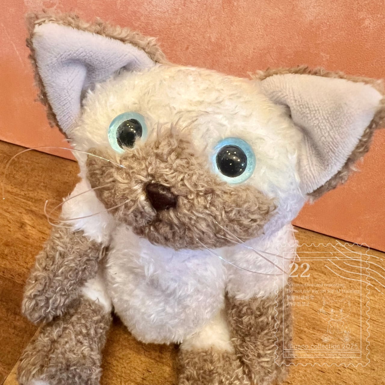 まんまるおめめが魅力の、シャム猫のぬいぐるみ「ぬいねこ」です。