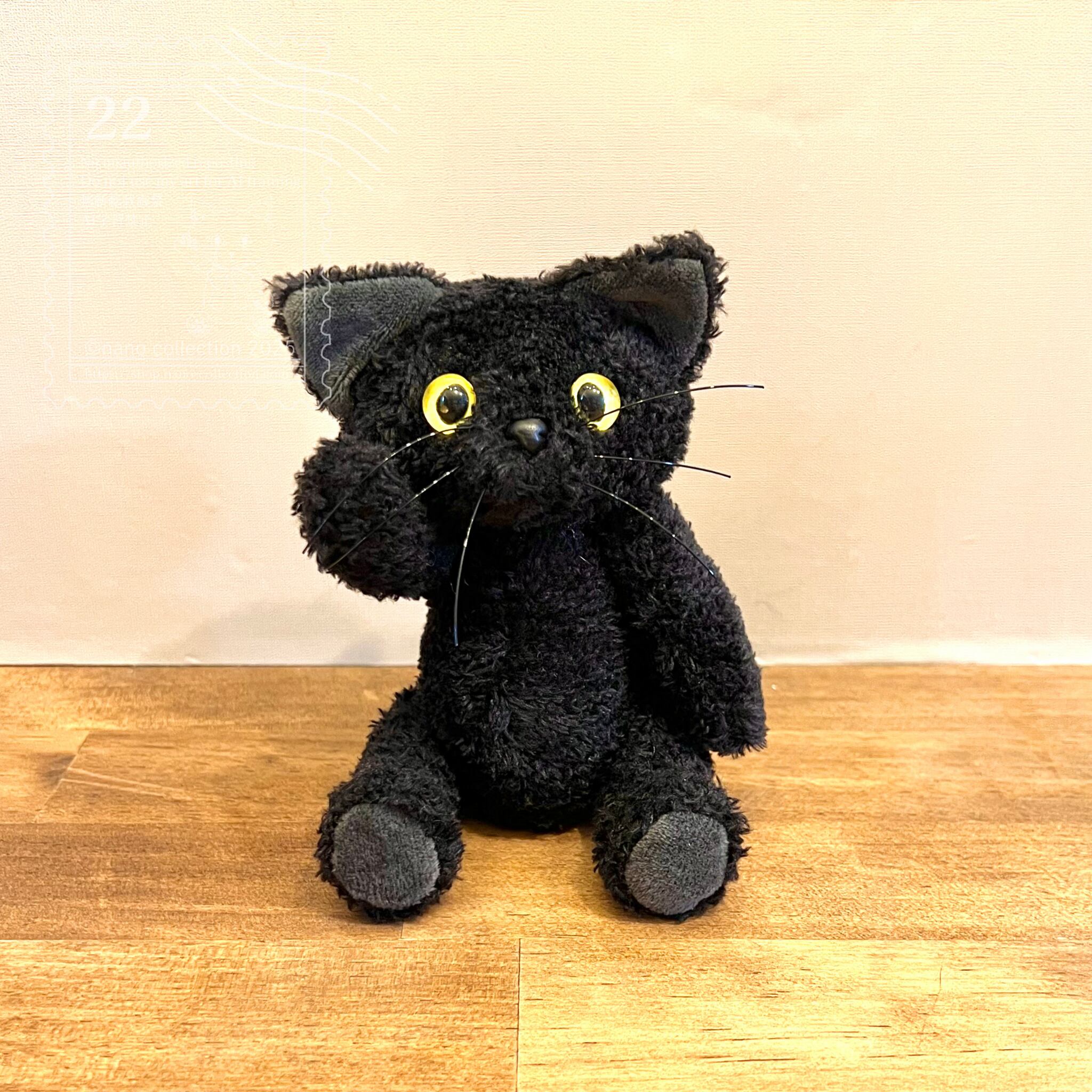 キュルンとしたまんまるおめめが魅力の、黒猫のぬいぐるみ「ぬいねこ」です♪